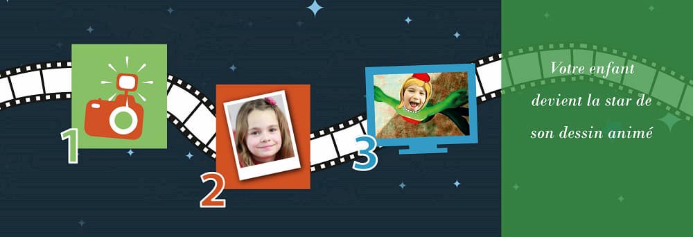 Votre photo est intégrée dans de nombreuses scènes et vous devenez la star de votre dessin animé, entourée des autres personnages de l’histoire pour de moments mémorables en famille!