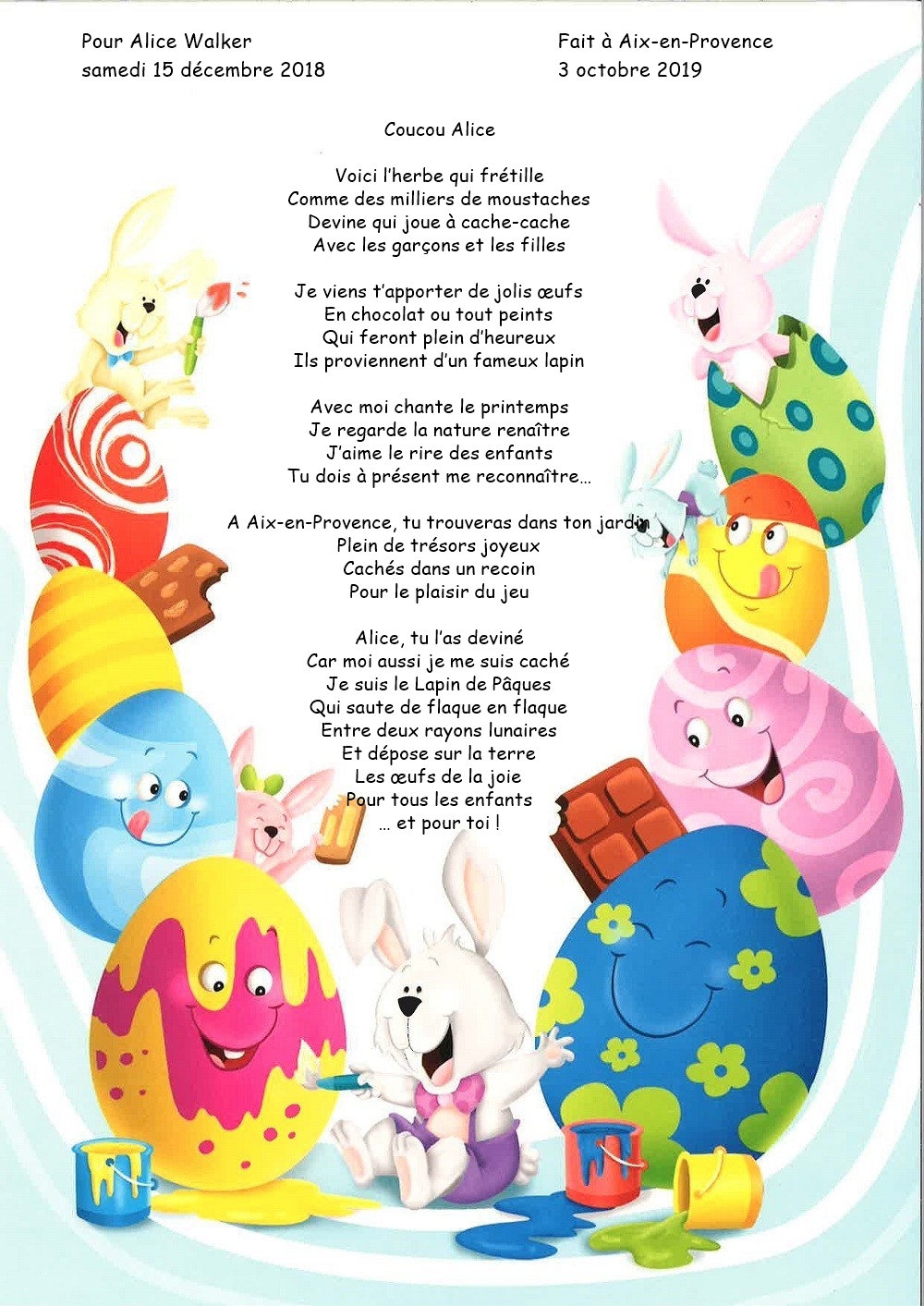 Quoi de plus magique que de recevoir la lettre du lapin de Pâques ?  Un poèmes avec les rimes au prénom de votre enfant